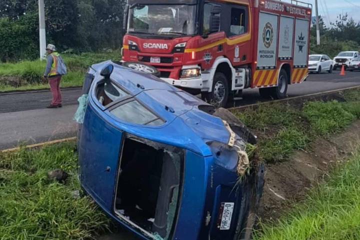 Una volcadura vehicular se registró la mañana de este miércoles sobre la carretera Morelia-Pátzcuaro, la cual dejó cuatro mujeres lastimadas, indicaron fuentes policiales y de rescate.