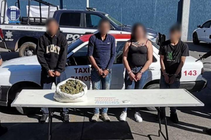 NOTICIAS 14/02/2021En Jacona, detiene SSP a cuatro en posesión de más de 1 kilo de drogas En seguimiento a las labores para la prevención del delito en este municipio, elementos de la Secretaría de Seguridad Pública (SSP), aseguraron a una persona del sexo femenino y tres masculinos en posesión de un costal con hierba verde seca con las características de la marihuana y 41 envoltorios con sustancia granulosa al parecer metanfetamina.