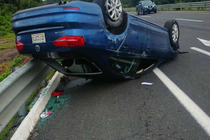Un automóvil volcó al circular sobre la autopista Siglo XXI, tramo Pátzcuaro-Uruapan, percance que no dejó lesionados, únicamente daños materiales, mencionaron fuentes de rescate.