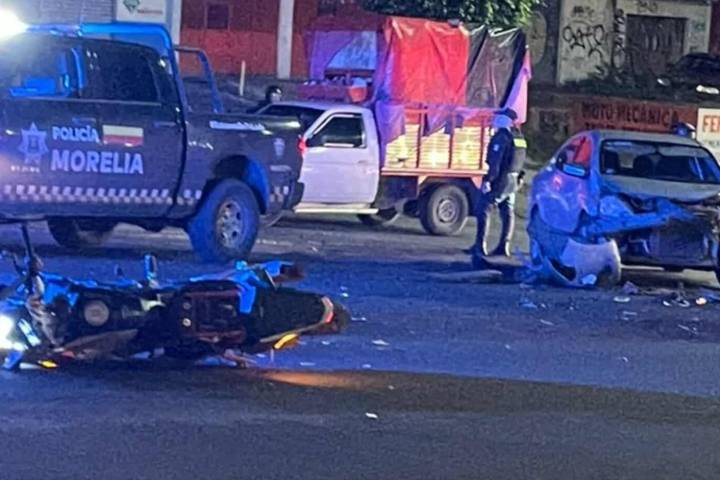 Un accidente de motocicleta y una colisión vehicular múltiple se registraron durante la madrugada de este domingo en diferentes vialidades de Morelia, percances que dejaron dos personas lesionadas y varios daños materiales, informaron fuentes de rescate.