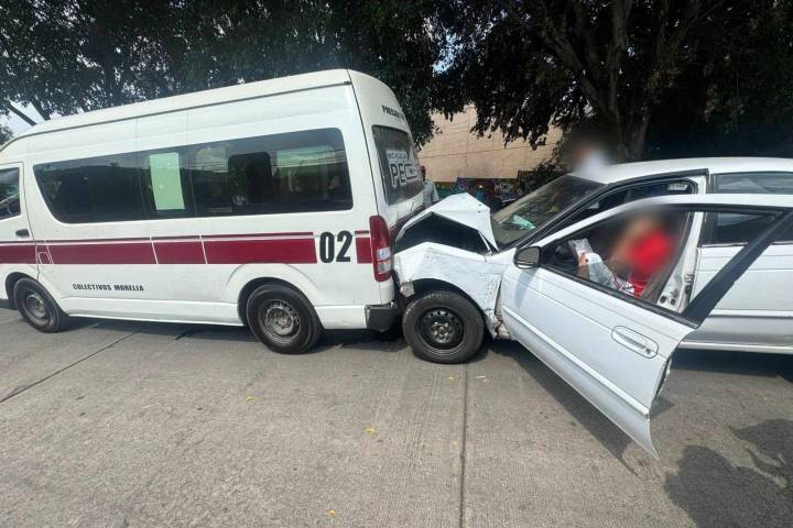 Al menos ocho personas resultaron lastimadas tras el choque de un automóvil contra la retaguardia de una combi de la Ruta Guinda, esto al sur de Morelia, informaron fuentes policiales.