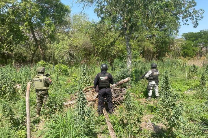 En labores conjuntas, el personal de las secretarías de Seguridad Pública (SSP) y de la Defensa Nacional (Defensa) localizaron y destruyeron un plantío de marihuana en la localidad de Monte Grande, municipio de Parácuaro.