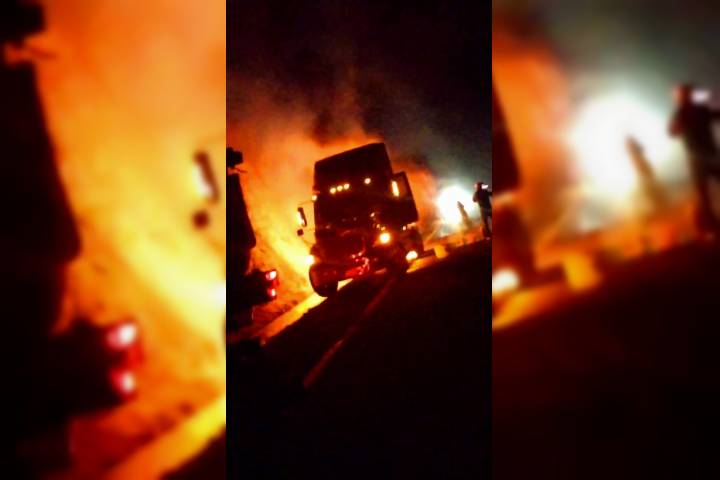 La noche de este martes, un camión de carga ardió en llamas sobre la autopista Siglo XXI, aparentemente por una aparente falla. El conductor de la unidad alcanzó a orillarse en el acotamiento y a ponerse a salvo, de acuerdo con los reportes preliminares. El incidente se registró a la altura del kilómetro 148 del tramo carretero Santa Casilda – Cuatro Caminos, en las inmediaciones del sitio conocido como "El Socavón", donde otros transp...