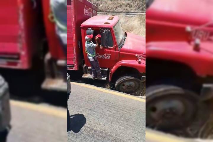 Un camión refresquero se accidentó sobre la carretera Morelia-Pátzcuaro, dentro del municipio de Huiramba, en los límites con la región de Pátzcuaro, hecho que únicamente dejó daños materiales.