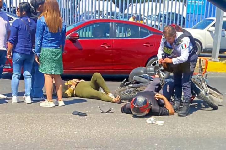 Dos adolescentes resultaron levemente lastimados cuando la motocicleta en la que viajaban chocó contra el costado izquierdo de una camioneta sobre la avenida Pedregal, al poniente de Morelia.