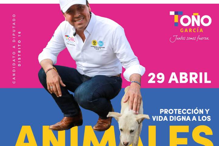 NOTICIAS 29/04/2024Protección y vida digna a los animales: Toño García Brindar una vida digna y protección a los animales forma parte de las principales propuestas que el candidato del PAN y PRD, Toño García, ha promovido durante su campaña electoral y a lo largo de su trayectoria como servidor público.