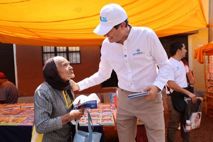 Al recorrer locales de frutas y verduras, venta de pollo, electrónicos, carne, quesos, artículos para el hogar, Alfonso platicó con los locatarios y compradores, quienes no pe... Ver más...