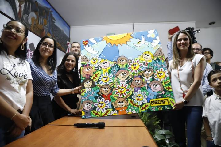 En un acto simbólico y significativo, De Los Santos hizo entrega de un cuadro alusivo a la paz, la unidad y la democracia de los partidos políticos, del a... Ver más...