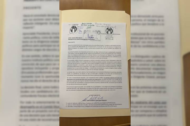 NOTICIAS 02/04/2024Renuncia al cargo el Secretario de Organización del PRI en MoreliaLas decisiones unilaterales que ha tomado el Comité Estatal del PRI durante el presente periodo electoral, comienzan a cobrar factura en la estructura tricolor a nivel municipal, ya que este lunes José Martínez Morales presentó su renuncia a la Secretaría de Organización, al no compartir la decisión de no ir en alianza en Morelia.