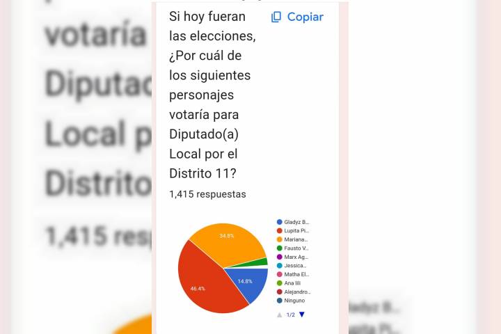 De acuerdo con una de las encuestas aplicada en redes sociales, la aspirante a coordinar el distrito 11 encabezó la preferencia con un 46.4 por ciento.