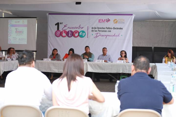 NOTICIAS 04/05/2023Garantizar derechos políticos-electorales de las personas con discapacidad, reto del IEM La democracia no admite excepción alguna, exige derrotar todas las formas de exclusión y discriminación político-electoral ante ello, el Instituto Electoral de Michoacán (IEM) y la Comisión Estatal de Derechos Humanos (CEDH), en coordinación con grupos, colectivos y asociaciones que integran personas con alguna discapacidad realizaron el "Primer Encuentro de los derechos Político-Electorales de las Personas con Discapacidad".
