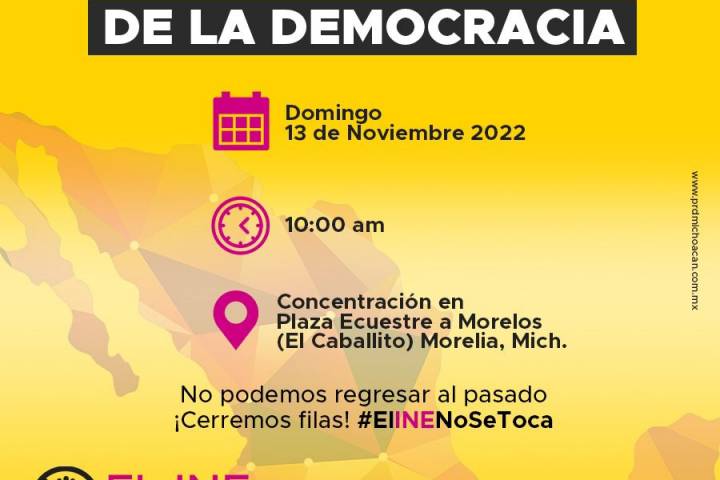 NOTICIAS 08/11/2022El INE no se toca PRD convoca a movilizarse en defensa de la democraciaLa Reforma Electoral que se promovió desde Palacio Nacional representa un retroceso para la vida democrática del país, y se contrapone al derecho que todas y todos los mexicanos tienen para elegir libremente a sus gobernantes, ante lo que integrantes de la Dirección Estatal Ejecutiva (DEE) del Partido de la Revolución Democrática (PRD), prepara una movilización en defensa de la democracia nacional, que se realizará el próximo domingo 13 ... Ver más...