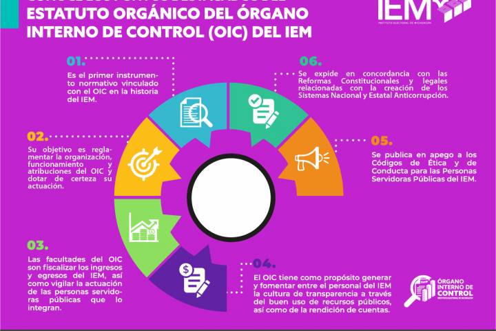 NOTICIAS 08/08/2022Se expide el primer estatuto orgánico de la contraloría del IEMCon el objeto de fortalecer los mecanismos y atributos de control interno, fiscalización y vigilancia de los sistemas, procesos y procedimientos en materia administrativa utilizados por el Instituto Electoral de Michoacán (IEM), así como de reglamentar la organización, funcionamiento y atribuciones del Órgano Interno de Control (OIC) del IEM, se presentó el Estatuto Orgánico de la contraloría del Instituto.