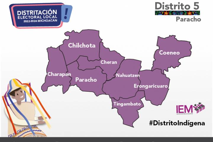NOTICIAS 25/07/2022Michoacán contará con su primer distrito electoral indígena La distritación electoral es fundamental para asegurar la equidad en la representación de la voluntad popular en las elecciones, por ello, ante la reciente modificación en la distritación local aprobada del Instituto Nacional Electoral (INE); Michoacán contará con su primer distrito indígena, y garantizará una representatividad equilibrada para el Proceso Electoral 2023-2024.