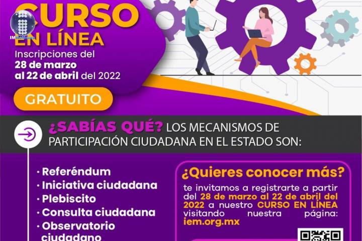 Con la finalidad de que la ciudadanía michoacana conozca los mecanismos de participación con los que pueden incidir de manera directa en la toma de decisiones de los órganos de gobierno encaminadas al bien común, el Instituto Electoral de Michoacán (IEM) abrió el registro para el Curso en Línea sobre "Mecanismos de Participación Ciudadana en el estado de Michoacán". El curso inicia el próximo 25 de abril de 2022, el cual, estar...