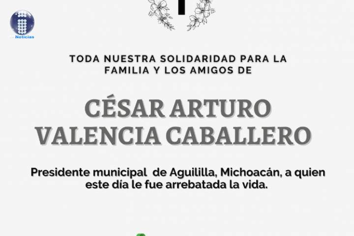 NOTICIAS 10/03/2022Lamenta Partido Verde asesinato del edil de AguilillaEl Partido Verde Ecologista de México (PVEM), en Michoacán, presidido por Ernesto Núñez Aguilar, lamenta el asesinato del presidente municipal de Aguililla, César Arturo Valencia Caballero.