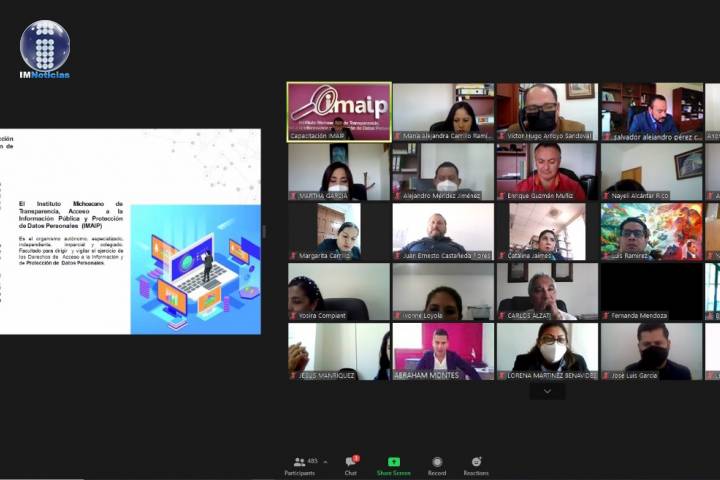 NOTICIAS 16/02/2022Con capacitación, brinda IMAIP herramientas a personal del TEEM para uso y manejo de datos personales Como parte de la capacitación constante que reciben las y los trabajadores del Tribunal Electoral del Estado de Michoacán (TEEM), este miércoles se llevó a cabo el curso "Inducción a la Transparencia, Acceso a la Información Pública, Plataforma Nacional de Transparencia, Protección de Datos Personales, Archivo y Gestión Documental", impartido por el Instituto Michoacano de Transparencia Acceso a la Información Y Protección de datos Pe... Ver más...