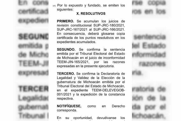 Se confirma la sentencia emitida por el Tribunal Electoral de Michoacán en el juicio de inconformidad TEEM-JIN-165/2021 por las razones expresadas en la ... Ver más...