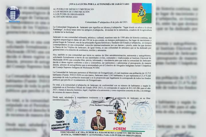 NOTICIAS 08/07/2021Autoridades purhépecha de Jarácuaro solicitan al IEM consulta para ser autónomosAutoridades civiles, comunales y tradicionales de Jarácuaro solicitan ante el IEM, consulta para que toda la comunidad decida si desea regirse conforme a usos y costumbres, ser autónomos y administrar el presupuesto de manera directa #CSIM