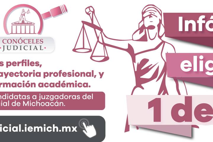 NOTICIAS 15/05/2025Quiénes quieren impartir justicia en Michoacán? Consulta ya sus perfiles en Conóceles Judicial IEM Este 1 de junio las y los michoacanos tendrán en sus manos una decisión histórica: elegir a quienes impartirán justicia en el estado. Para ayudarte a tomar una decisión informada, el Instituto Electoral de Michoacán (IEM) pone a tu disposición el sistema Conóceles Judicial, una herramienta en lÃnea para conocer a fondo a las personas candidatas.