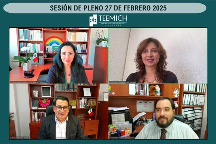 NOTICIAS 27/02/2025En sesión pública el Tribunal Electoral del Estado resolvió nueve medios de impugnación Alma Rosa Bahena Villalobos, Magistrada Presidenta del Tribunal Electoral del Estado (TEEMICH), Yurisha Andrade Morales, Magistrada; y Everardo Tovar Valdez, Magistrado en sesión pública resolvieron nueve