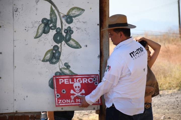 NOTICIAS 04/02/2025Recorre Memo Valencia Tierra Caliente, ruta del terror Esto es muy simbólico, pero es una forma de protestar para que el gobierno sepa que toda la gente está a merced del crimen organizado, de los maleantes, y desde aquí queremos alertar también a los mismos militares, aseveró el líder estatal del PRI Michoacán, Memo Valencia al colocar letreros en este municipio en los que advierte el riesgo que enfrenta la población al transitar por zonas minadas.