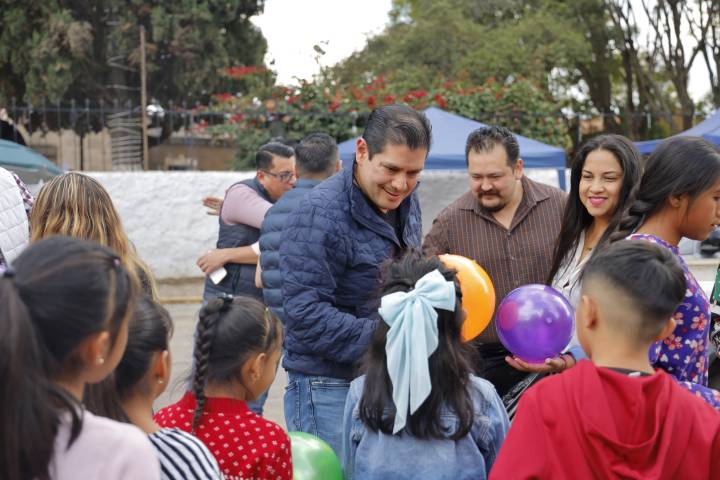 Ernesto Núñez Aguilar, dirigente estatal, encabezó la entrega de los regalos a los niños que se encuentran con la ilusión de la mágica noche en la que Melchor, Gaspar y Baltazar reparten alegría y regalos.