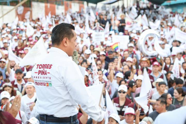 Ante miles de simpatizantes de la 4T que arroparon a Torres Piña en la colonia Trincheras, el abanderado de Morena, Partido del Trabajo y Verde Ecologist... Ver más...