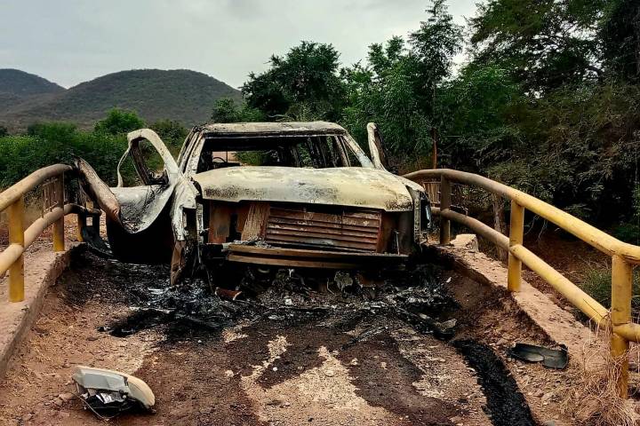 Hallan dos cadáveres calcinados dentro de Suburban blindada, estallada con explosivo improvisado terrestre en Las Bateas