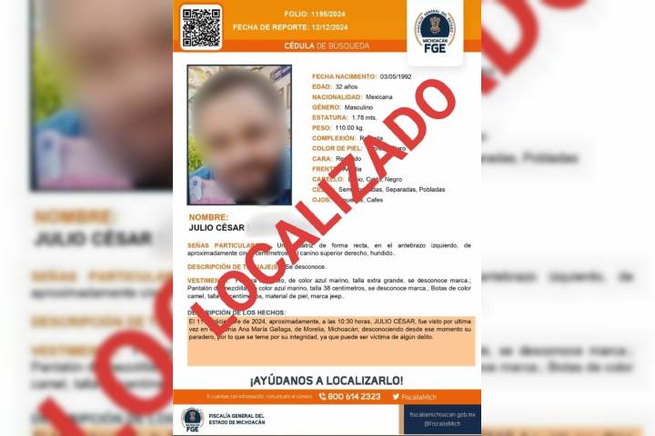 Se trata de Julio César L., de 32 años de edad, quien fue visto por última vez con vida en la citada f... Ver más...