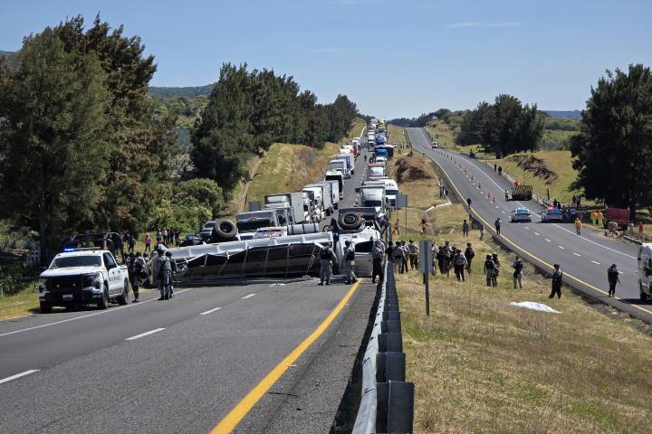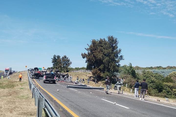 El suceso fue en el kilómetro 343+500 del tramo México-Guadalajara. La identidad de los dos guardias nacionales fallecidos y de los 20 lesionados no fue revelada por las a... Ver más...