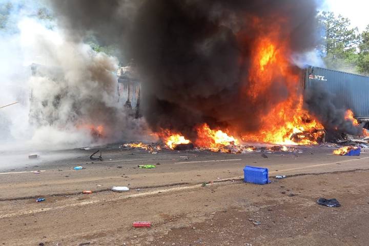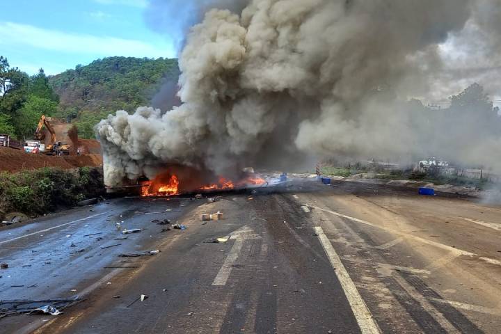 De acuerdo con los primeros informes, en el tramo Pátzcuaro – Uruapan, a la altura de la antigua caseta de cobro de San Ángel, una de las pesadas unidades se quedó sin frenos e impactó contra otros dos camiones y ... Ver más...
