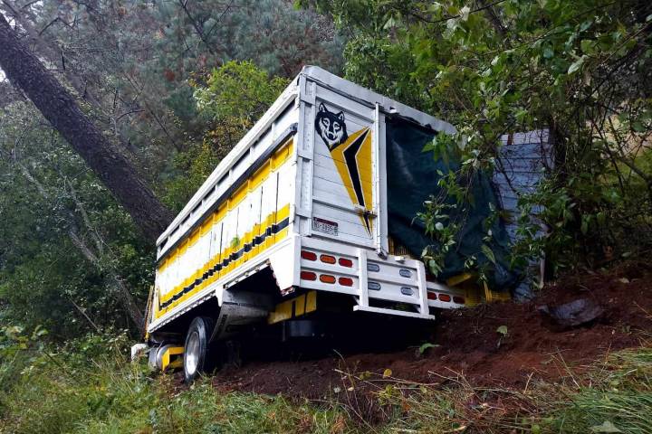El percance se registró a la altura del kilómetro 118, en las inmediaciones de la desviación al rancho Los Lobos, donde tras el impacto quedó convertido en chatarra un camión de carga de colores blanco y amarillo, con matrícula NS-0855-B.