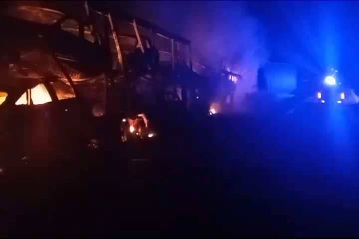 NOTICIAS 15/11/2023Choque múltiple en la Siglo XXI; preliminar un muerto y tres heridosUn choque múltiple en el que según los primeros datos, se vieron involucrados un camión nodriza, dos tráileres y un autobús dejó como saldo preliminar un fallecido, tres lesionados y la unidad que trasladaba autos nuevos incendiada, en la Autopista Siglo XXI.