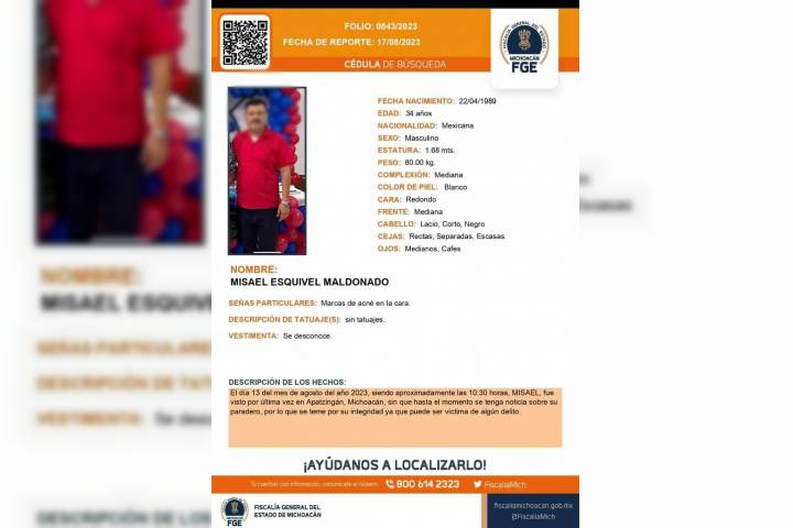 La víctima era buscada desde el pasado 17 de agosto del presente año, cuando sus familiares reportaron su desaparición. De acuerdo a la información de la ficha de búsqueda el ahora occiso fue identificado como Misael E., d... Ver más...
