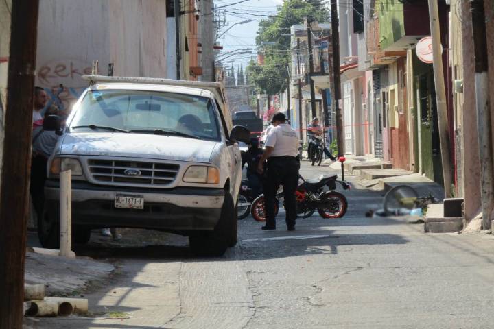 Un hombre que viajaba en una bicicleta perdió la vida de forma inmediata debido a las lesiones que sufrió en la cabeza al impactarse contra una camioneta, cuyo conductor espero a que arribarán autoridades policíacas.