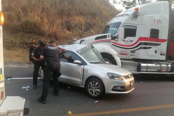 El trágico accidente se registró en el tramo carretero Uruapan-Pátzcuaro, a unos metros de la desviación a San Ángel Zurumucapio, donde colisionaron un camion de la marca Kenworth, de color blanco y un auto de color gris.