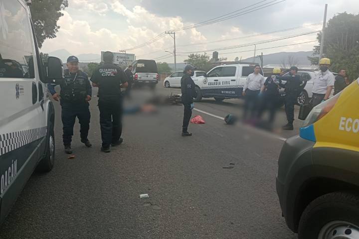 NOTICIAS 22/04/2023Pareja de motociclistas muere tras ser impactados por vehículo desconocido, en la Morelia-Pátzcuaro Un hombre y una mujer que se desplazaban en una motocicleta sobre la carretera Morelia - Pátzcuaro, murieron tras ser embestidos por un vehículo desconocido, cuyo conductor imprimo mayor velocidad y huyó del lugar.