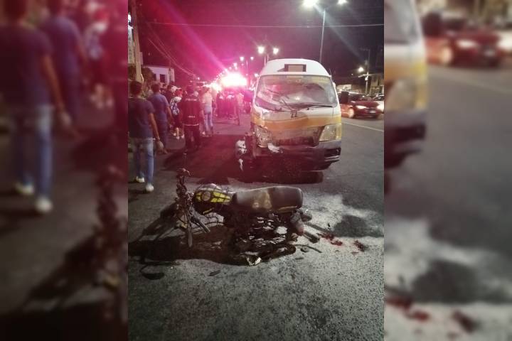 Hace unos minutos se registró un aparatoso choque en el que según los datos preliminares una combi de la Ruta Amarilla impactó contra una motocicleta, en el acceso al fraccionamiento Villas del Pedregal.