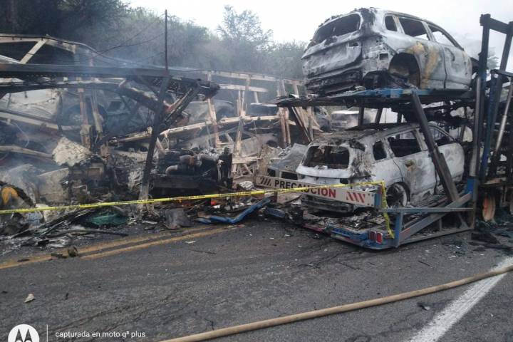 El aparatoso accidente se registró a altura del kilómetro 110, entre las casetas de Taretan y Santa Casilda, donde las unidades comenzaron a arder en llamas y quedaron bloqueando por completo la vialidad.