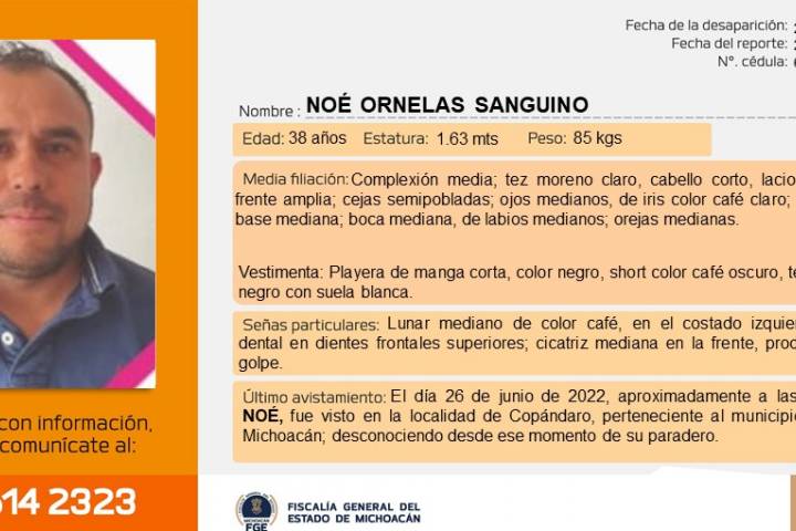 La Fiscalía General del Estado de Michoacán (FGE) realiza actos de investigación por el homicidio del síndico municipal de Jiménez, Noé Ornelas Sandino, reportado como desaparecido anoche y localizado sin vida la mañana de este lunes, a un costado de la carretera, La Soledad-La Estancia, municipio de Villa Jiménez. Con relación a este hecho, la Fiscalía General avanza en las investigaciones y cuenta ya con datos contundentes para l...