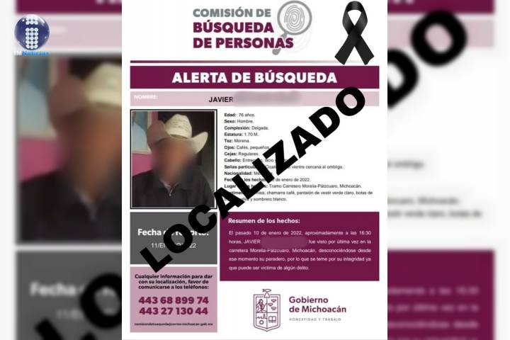El susodicho había desaparecido durante la tarde del pasado 10 de enero del año en curso, y fue visto por última vez en la carrera Morelia-Pátzcuaro.