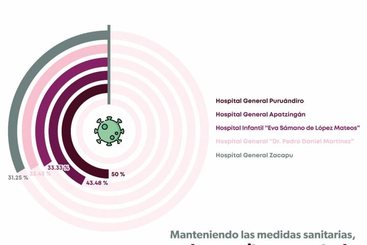 El Hospital General de Puruándiro es el que mayor prevalencia registra con 50 por ciento, seguido por Apatzingán (43.48%); Infantil "Eva Sámano de López Mateos" (33.33%); Uruapan "Pedro Daniel Martínez" (32.43%) y ... Ver más...