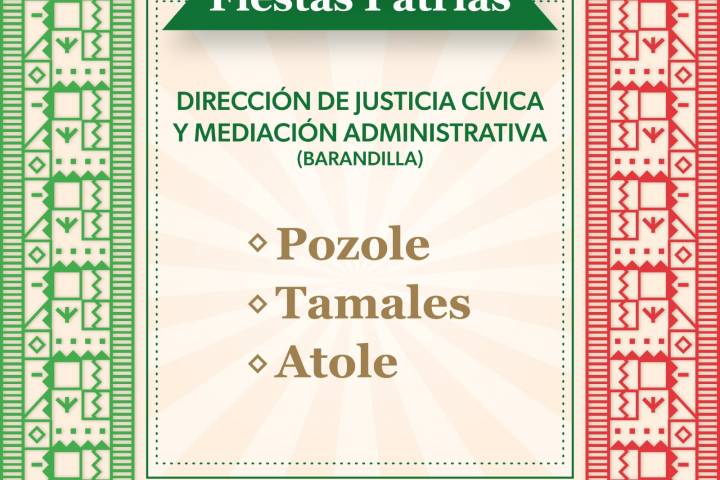 NOTICIAS 15/09/2023Para infractores en fiestas patrias, DJCMA de la SSP les ofrecerá pozole, tamales y atoleLa Secretaría de Seguridad Pública (SSP) informa, a través de la Dirección de Justicia Cívica y Mediación Administrativa, el menú que se ofrecerá a las y los infractores durante las fiestas patrias, en Morelia.