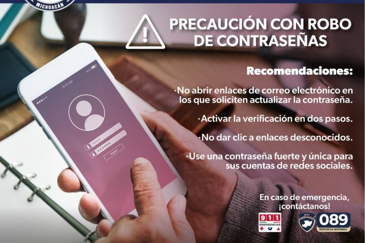 NOTICIAS 26/05/2023SSP emite alerta por robos de contraseñas de redes socialesA través de las labores de monitoreo e investigación por parte del personal de la Policía Cibernética de la Secretaría de Seguridad Pública (SSP), se detectó un incremento de casos en la entidad de robo de contraseñas de redes sociales.