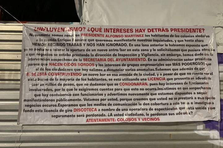 NOTICIAS 03/11/2022Vecinos de la Enrique Ramírez Miguel cuestionan permiso de operación de BarHabitantes de las colonias Las Américas y Chapultepec se manifestaron para exigirle al Ayuntamiento que se transparente la operación de un7 nuevo bar que estará ubicado sobre la avenida Enrique Ramírez, en Morelia al señalar que el documento con el que la administración pretende operar presenta un adeudo cercano Al millón pesos.