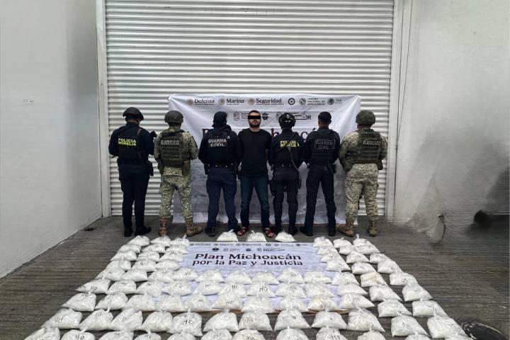 NOTICIAS 20/11/2025Asegurados 50 kg de droga y detienen a un implicado en Morelia: SSPComo resultado de las labores operativas y de inteligencia contempladas en el Plan Michoacán por la Paz y la Justicia, elementos de la Secretaría de Seguridad Pública (SSP), en coordinación con la Secretaría de la Defensa Nacional (Defensa) y Policía Morelia, aseguraron aproximadamente 50 kilogramos de sustancia granulosa con características propias de metanfetamina, además, se detuvo a un hombre relacionado con estos hechos.