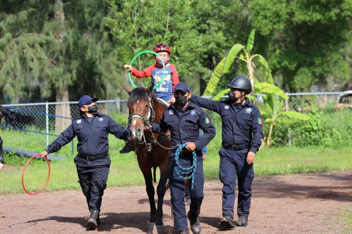 NOTICIAS 09/09/2022Equinoterapia: con más de 600 sesiones, Guardia Civil coadyuva en la rehabilitación infantil.Con el objetivo de brindar apoyo a familias, niñas y niños, en la Secretaría de Seguridad Pública (SSP), se conforma el Agrupamiento de Equinos y Caninos que tiene como finalidad ayudar en el proceso de los pequeños con alguna discapacidad; siendo una alternativa de salud física, psíquica y social, misma que, hasta el momento, se han impartido más de 600 sesiones a menores que las requieren.
