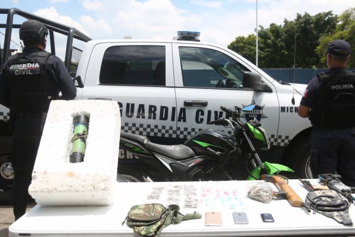 NOTICIAS 28/08/2022Resultado de operativo en Jacona, Guardia Civil y Policía Municipal aseguran artefacto explosivo y tres armas de fuego Las firmes acciones en materia preventiva que se realizan en este municipio, permitieron a los agentes de la Secretaría de Seguridad Pública (SSP), y de la Policía Municipal asegurar un artefacto explosivo de fabricación casera, tres armas de fuego hechizas y más de 60 envoltorios que contenían diversas drogas, así como un vehículo con los medios de identificación alterados.