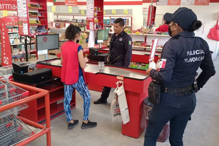 Como parte de los trabajos para la prevención y disuasión del delito en los municipios del estado, los agentes de la Secretaría de Seguridad Pública (SSP), mantienen un dispositivo de vigilancia en tiendas de autoservicio, en Morelia. Fue en distintos puntos de la capital del estado que los elementos del Agrupamiento de Proximidad Social y Violencia de Género Contra la Mujer de la Policía Michoacán, se acercaron para visitar a los loca...